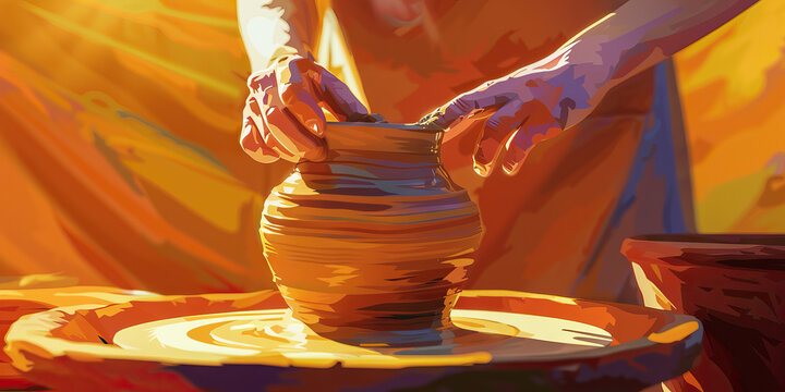 A skilled potter centers clay on their wheel, spinning it expertly to create a beautiful vase