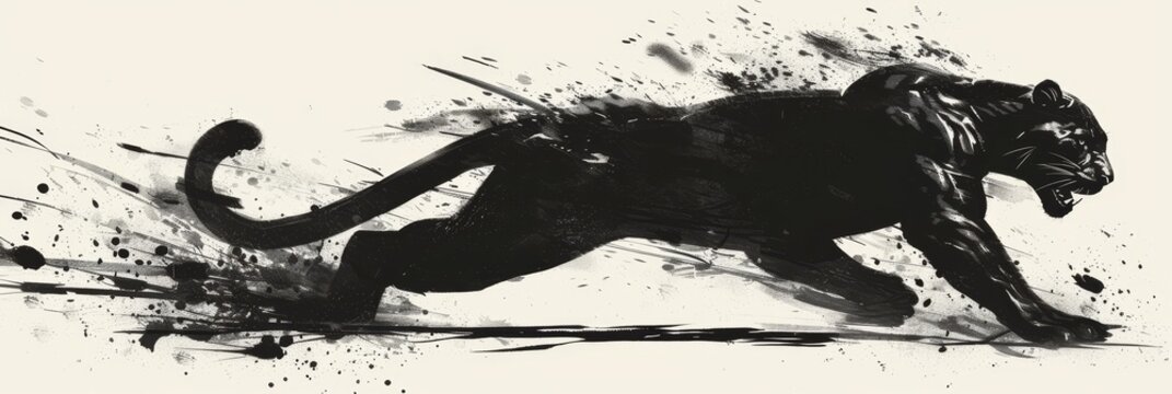 Sleek black panther in motion  dynamic capture of speed and power on white background