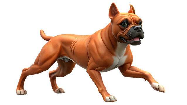 Illustrated and stylized running boxer dog against a black background ready to pounce
