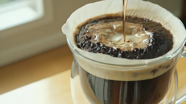 Pour over coffee brewing, kitchen, sunlight, morning