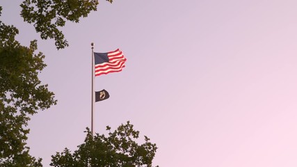 USA flag and POW MIA flag waving in slow motion
