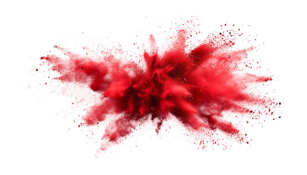 Red scarlet ruby color powder dust explosion PNG transparent background isolated graphic resource. Celebration, colorful festival, run or party element
