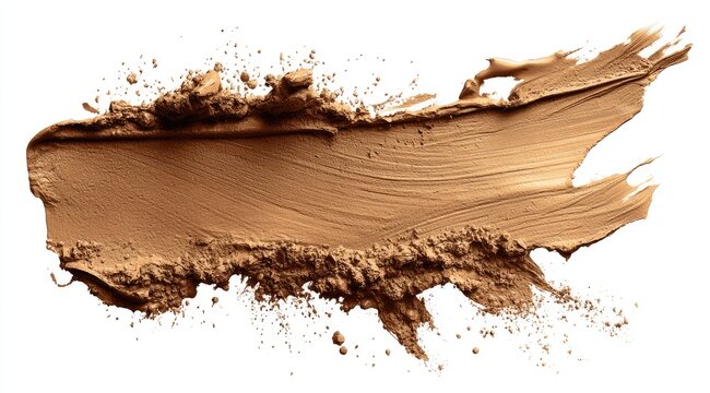 Bronzer or eye shadow swatch smear smudge isolated on white. Brown makeup face powder