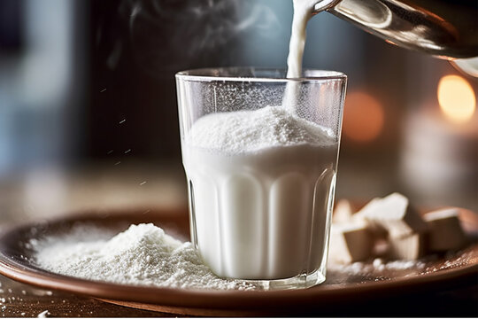 granulated milk powder on a dark stone background