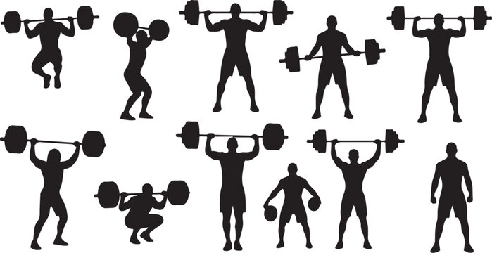 Dynamic silhouettes showcasing strength training, barbell lifts, and fitness exercises for a powerful athletic lifestyle and gym inspiration