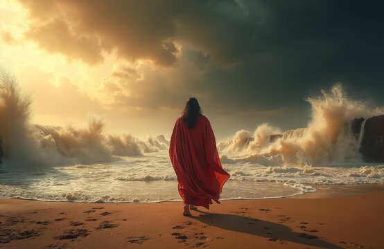 A Radiant Person Confidently Navigating a Stormy Sea An Image Representing Self-Esteem, Resilience, and Trust in Uncertain Times This powerful visual metaphor showcases inner strength and the