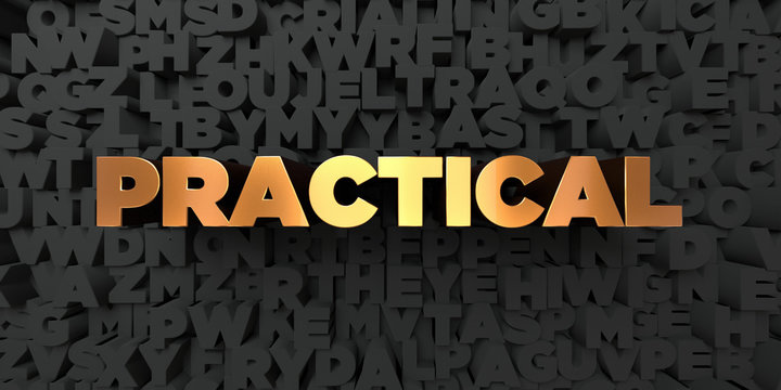Practical - Gold text on black background - 3D rendered royalty free stock picture. This image can be used for an online website banner ad or a print postcard.