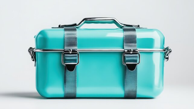 An open black utility case rests on a wet street, revealing an organized setup of various tools and devices, showcasing a blend of functionality and practicality in an urban environment