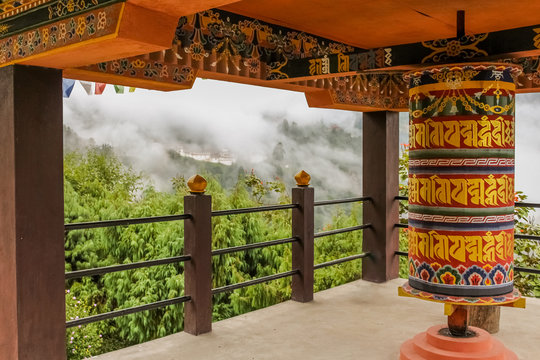 Buddhist prayer wheel in a temple in Bumthang, Bhutan