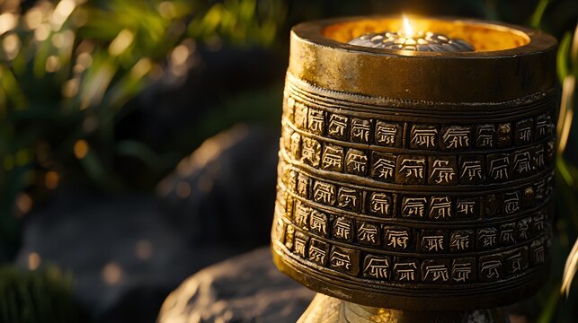 Intricate prayer wheel featuring sacred symbols for spiritual practice and meditation design