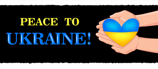 Poster in support of Ukraine. Stop the war, help Ukraine. The text of the military banner with the heart of Ukraine in the hands. international protest.