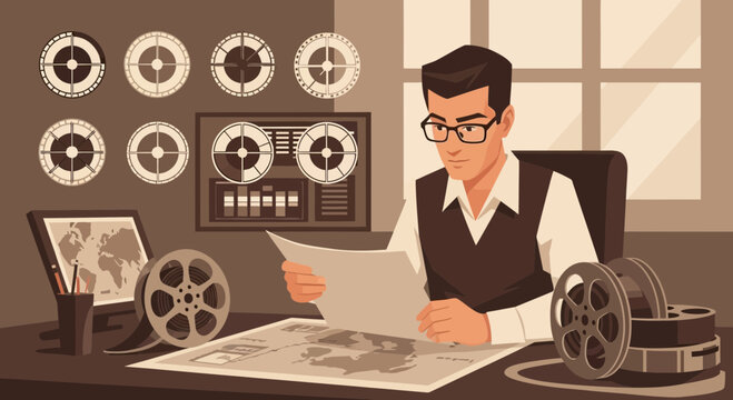 Pre-production filmmaking and video production outline icon set. Vector icons for movie planning process including script writing, budget spreadsheet, and shooting schedule.