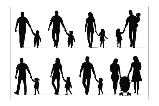 Silhouette of Family: Silhouettes of diverse family, symbolizing love, security, and the precious bonds of parenthood, walking together in perfect harmony.