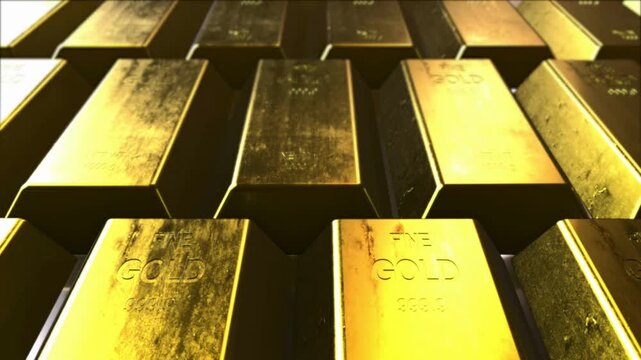 Close-up view of fine gold bar stacks Seamless loop 4k cg 3d animation precious metal investment as a store of value
