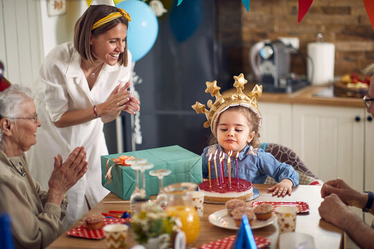 Magical Birthday Moments: Girl Blows Out Candles as Mom Applauds