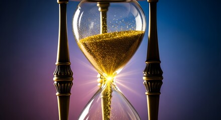 Elegant hourglass with glowing sand symbolizing fleeting time and precious moments ticking away slowly
