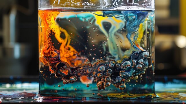 chemical process Yellow precipitate is created when two clear liquids are combined. Generative AI