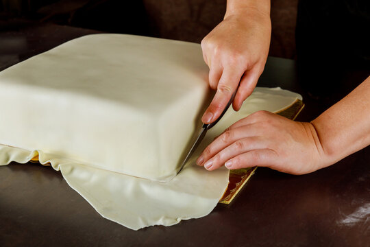 A dedicated baker intensely focuses on kneading and shaping dough on a floured surface, capturing the essence of craftsmanship and precision in baking artistry.