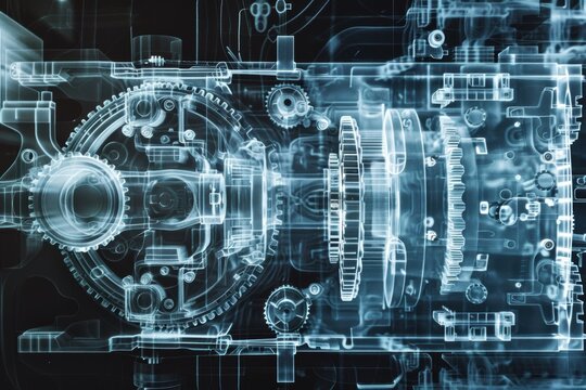 Industrial X-ray of Gearbox Mechanisms Revealing Internal Gears for Engineering Analysis and Design