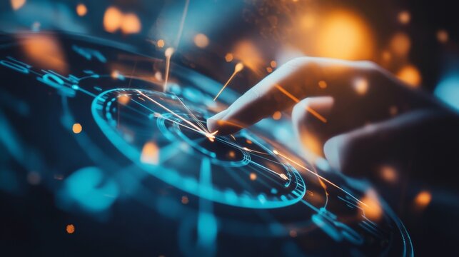 Time in the Circuit: A modern clock with a digital interface that shows the precision of time within the network.