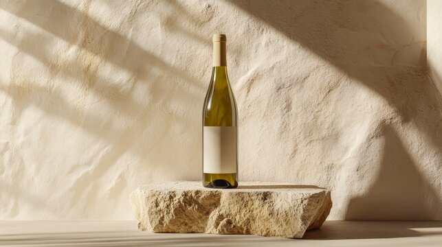 Wine bottle. Product photo on textured stone