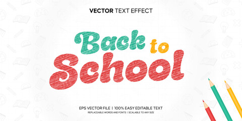 Back to School Colorful Lettering Pencil text effect hand-drawn style on a white board premium vector