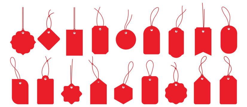 Set empty price tags in different shapes. Red price tags. Template of price tags, labels.