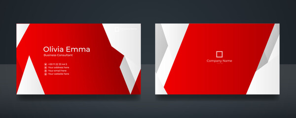 Modern red business card print templates. Personal visiting card with company logo. Vector illustration. Stationery design