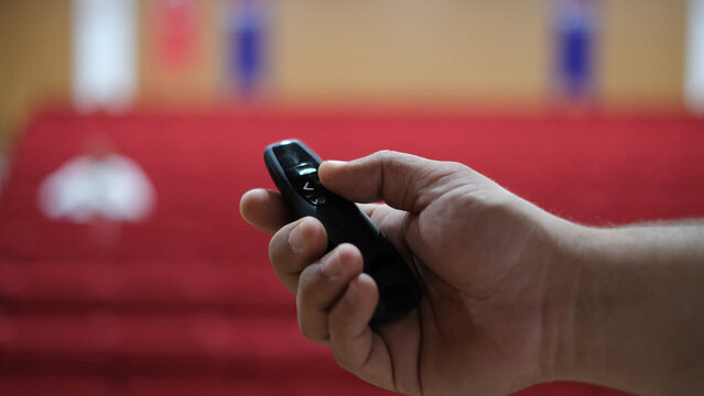 Male professional gesturing and explaining business concepts during a video call on laptop in a modern office, conducting a virtual meeting, training or presentation for remote team