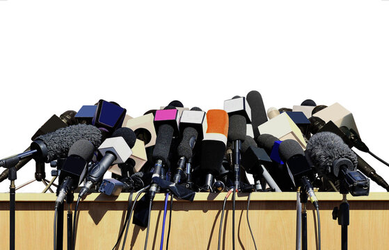 Press conference microphones isolated on white