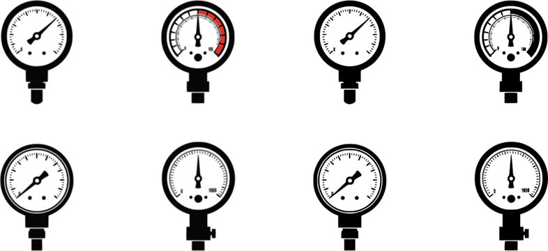 Manometer (pressure gauge) and vacuum gauge vector icons set