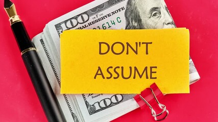 The phrase DON'T ASSUME appears on paper Animation of the conceptual words DON'T ASSUME