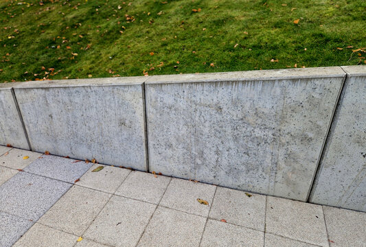 ugly holding a road notch of a bridge forecourt tunnel. retaining wall with concrete grouting is covered with fake, optically prettier wall. fencing with hollow bricks filled with wires, railing,steel