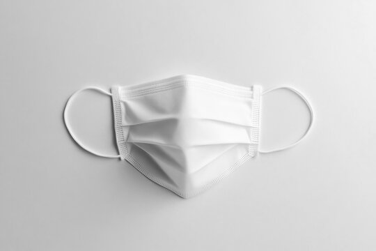 Face mask with elastic loops resting on a white surface for health and safety measures