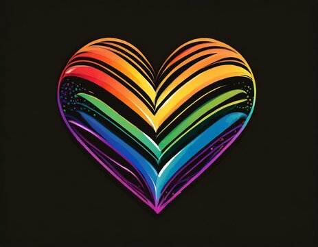 vector image of the lgbt flag on black background, queer pride month, wallpaper logo gay heart