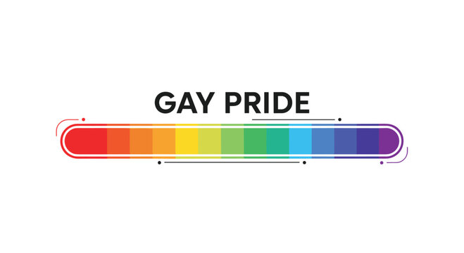 Horizontal progress bar featuring LGBTQ rainbow colors and the text gay pride on a white background for pride month celebrations.