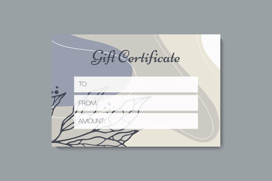 Trendy abstract gift voucher card templates. Modern discount coupon or certificate layout with artistic stroke pattern. Vector fashion bright background design with information sample text.
