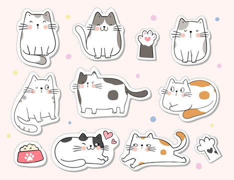 Christmas stickers with cute new year icon decorations. Winter holiday printable sticker sheet. Vector illustration in hand drawn cartoon flat style