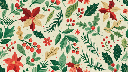 Christmas winter floral seamless pattern. with mail envelope and festive wreath with text in a hand-drawn style. pastel palette is ideal for printing packaging, fabrics, textiles.