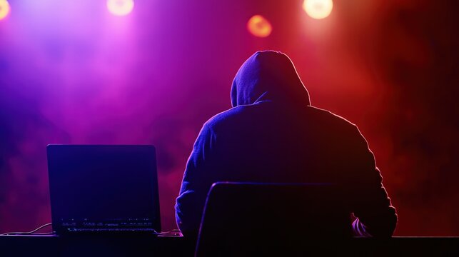 A hooded figure with face in shadow holds a smartphone symbolizing digital privacy concerns and online anonymity