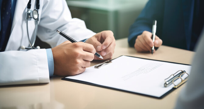 Two professionals engaging in a discussion in an office setting with their faces obscured for privacy