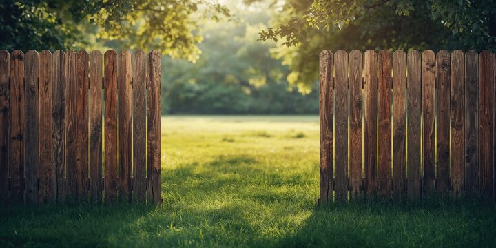A hyperrealistic close-up of a wooden fence adorned with lush greenery in a serene outdoor setting