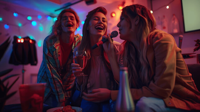 Joyful sunset party with enthusiastic attendees celebrating summer