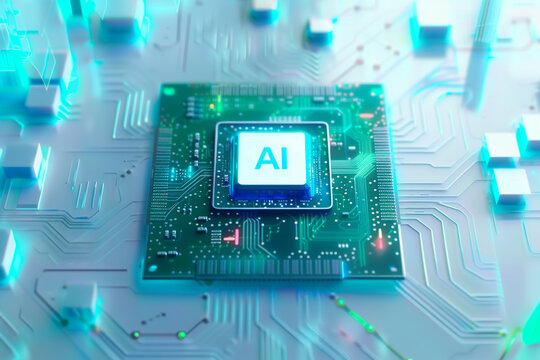 powerful computer processor microchip with the word representing artificial intelligence, AI technology