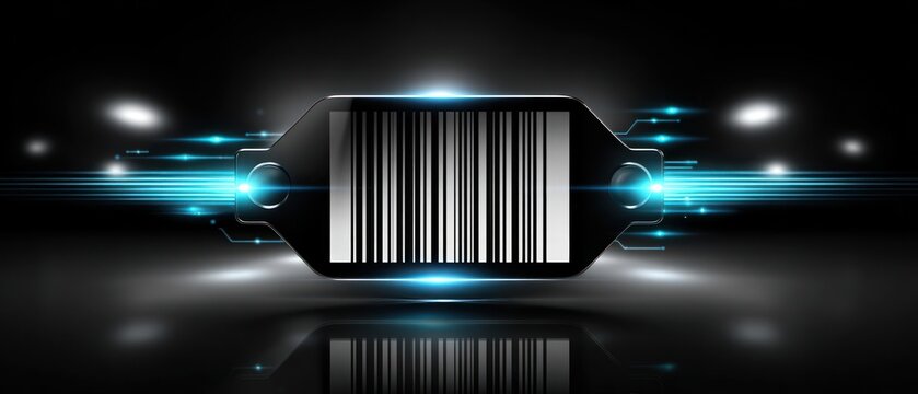 Hand scanning a dark product package with a red laser beam in a retail environment promoting digital transactions and efficient checkout