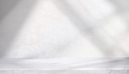 Minimal abstract light gray background for product presentation. Shadow and light from windows on plaster wall.