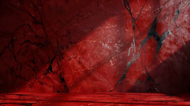 Vintage table top for product display and tropical plant branch on abstract cement wall background with dappled window sunlight shadows
