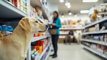 Thief alert at a pet shop, employee noticing suspicious behavior. Featuring fast response and pet product protection