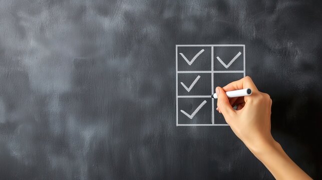 Checklist schedule and goals management concept. Hand Using Marker to Cross Off Tasks on Wall