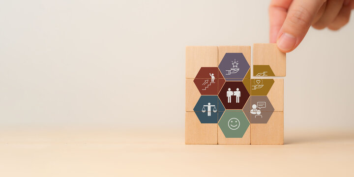 Operations management concept. Businessman on digital tablet with virtual innovation Operations management, business process and problem solving, monitoring and innovation, quality control